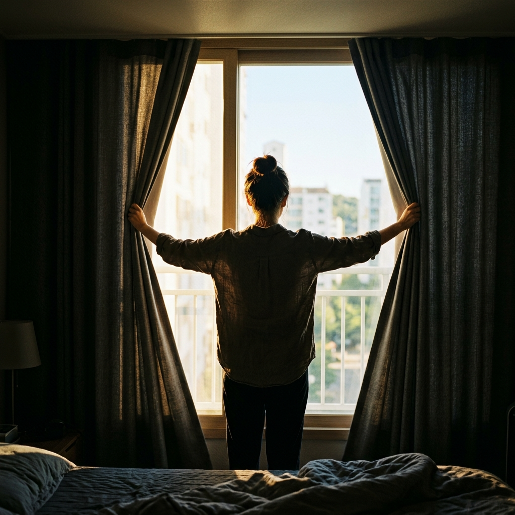 일어나자마자 커튼을 걷고